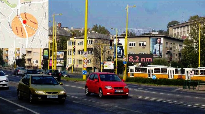 Magas fényerejű, 5,2 x 1,6 méter felületű (8,32 négyzetméter!) LED videófalunk a Budaörsi úttal szemben helyezkedik el, így nem kerülheti el az autóvezetők figyelmét. A LED fal előtt található lámpás kereszteződés további előnyt jelent, hiszen az erre haladó autósok jelentős része meg is áll a LED fallal szemben a jelzőlámpánál.